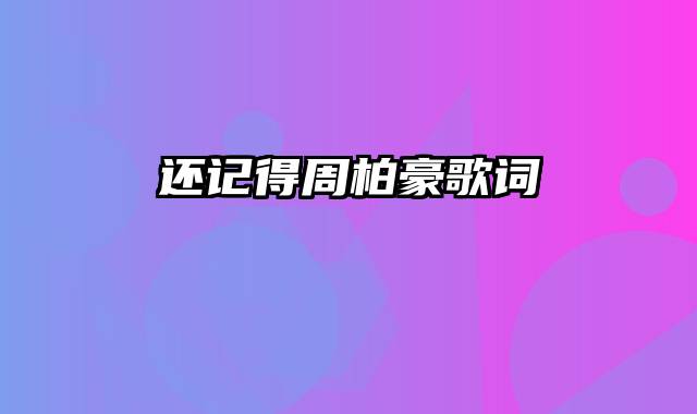 今天给各位分享还记得周柏豪歌词的知识,其中也会对还记得周柏豪mp3进行解释,如果能碰巧解决你现在面临的问题,别忘了关注本站,现在开始吧!