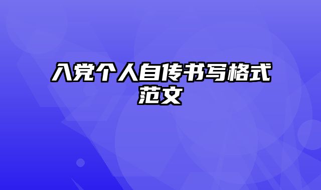 入党个人自传格式如下。标题一般要居中书写“自传”;正文开头一段一般要写上自己的个人信息,如姓名、性别、出生年月等;正文可以写家庭主要成员、主要社会关系的情况、个人成长经历、入党动机等。
