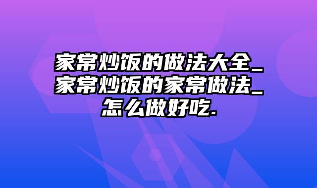 家常炒饭的做法大全_家常炒饭的家常做法_怎么做好吃.