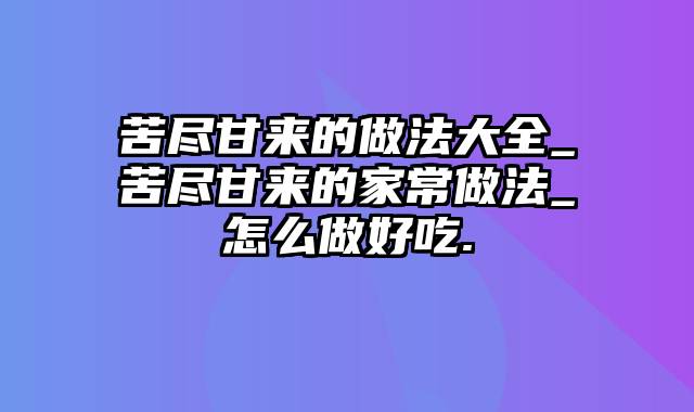 本篇文章给大家谈谈苦尽甘来的做法大全_苦尽甘来的家常做法_怎么做好吃.,以及苦尽甘来这道菜怎么做对应的知识点,希望对各位有所帮助,不要忘了收藏本站喔。