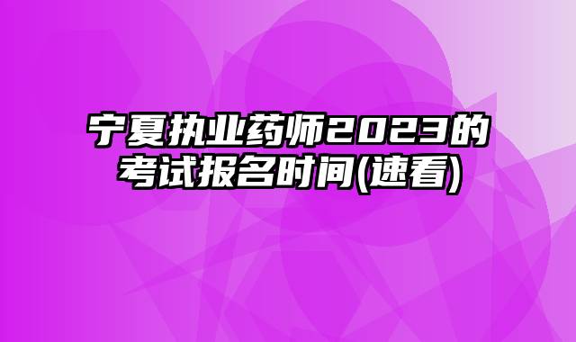 今天给各位分享宁夏执业药师2023的考试报名时间(速看)的知识,其中也会对宁夏执业药师考试地点进行解释,如果能碰巧解决你现在面临的问题,别忘了关注本站,现在开始吧!