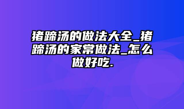 猪蹄汤的做法大全_猪蹄汤的家常做法_怎么做好吃.