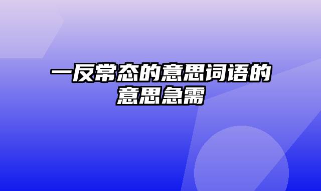 本篇文章给大家谈谈一反常态的意思词语的意思急需,以及一反常态 的意思对应的知识点,希望对各位有所帮助,不要忘了收藏本站喔。