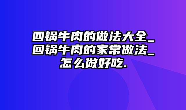 本篇文章给大家谈谈回锅牛肉的做法大全_回锅牛肉的家常做法_怎么做好吃.,以及回锅牛肉的做法最正宗的做法步骤对应的知识点,希望对各位有所帮助,不要忘了收藏本站喔。