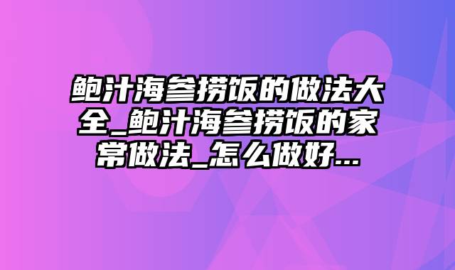 鲍汁海参捞饭的做法大全_鲍汁海参捞饭的家常做法_怎么做好...