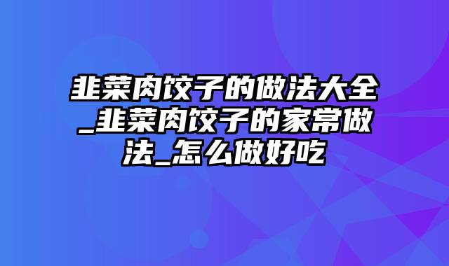 韭菜肉饺子的做法大全_韭菜肉饺子的家常做法_怎么做好吃
