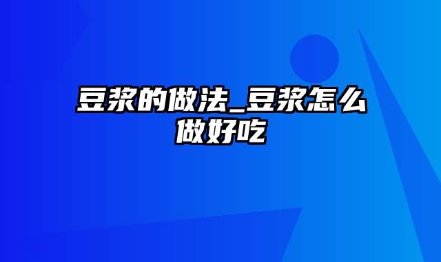 本篇文章给大家谈谈豆浆的做法_豆浆怎么做好吃,以及豆浆怎么做比较好吃对应的知识点,希望对各位有所帮助,不要忘了收藏本站喔。