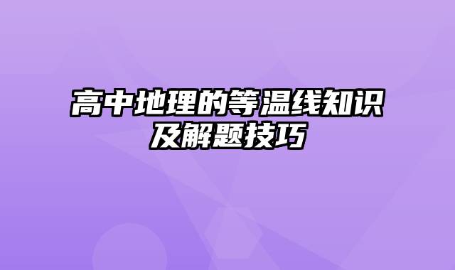 高中地理的等温线知识及解题技巧