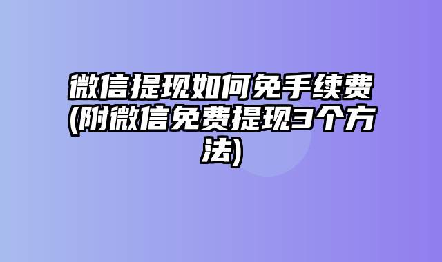 今天给各位分享微信提现如何免手续费(附微信免费提现3个方法)的知识,其中也会对微信提现免手续费怎么提进行解释,如果能碰巧解决你现在面临的问题,别忘了关注本站,现在开始吧!