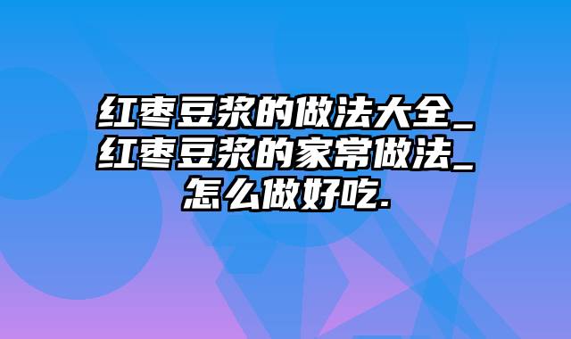 本篇文章给大家谈谈红枣豆浆的做法大全_红枣豆浆的家常做法_怎么做好吃.,以及红枣豆浆做法视频对应的知识点,希望对各位有所帮助,不要忘了收藏本站喔。