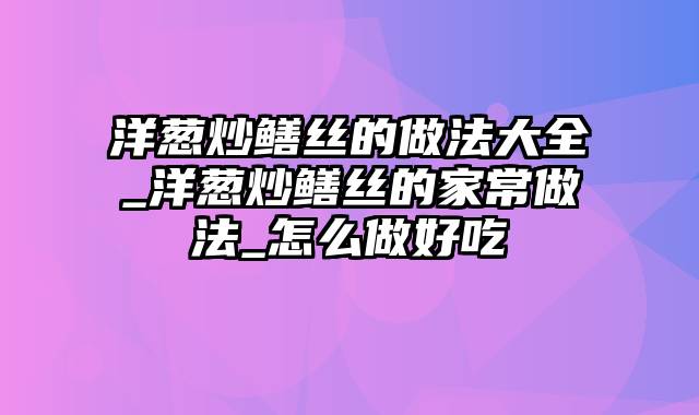 洋葱炒鳝丝的做法大全_洋葱炒鳝丝的家常做法_怎么做好吃