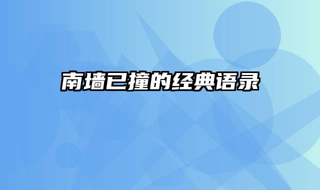 本篇文章给大家谈谈南墙已撞的经典语录,以及南墙已撞的经典语录短句对应的知识点,希望对各位有所帮助,不要忘了收藏本站喔。