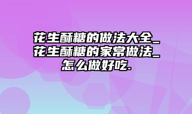 今天给各位分享花生酥糖的做法大全_花生酥糖的家常做法_怎么做好吃.的知识,其中也会对花生酥糖的做法与配方窍门进行解释,如果能碰巧解决你现在面临的问题,别忘了关注本站,现在开始吧!