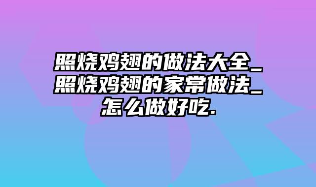 本篇文章给大家谈谈照烧鸡翅的做法大全_照烧鸡翅的家常做法_怎么做好吃.,以及照烧翅中做法对应的知识点,希望对各位有所帮助,不要忘了收藏本站喔。