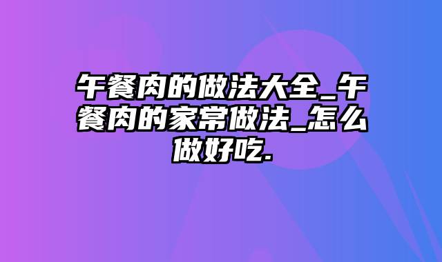本篇文章给大家谈谈午餐肉的做法大全_午餐肉的家常做法_怎么做好吃.,以及午餐肉的正宗做法对应的知识点,希望对各位有所帮助,不要忘了收藏本站喔。