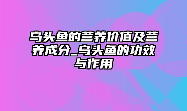 乌头鱼的营养价值及营养成分_乌头鱼的功效与作用