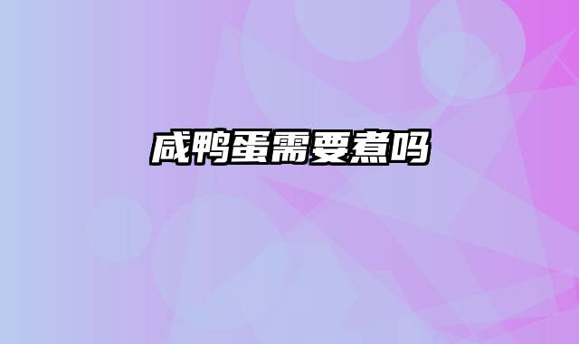 咸鸭蛋需要煮。咸鸭蛋虽然经过长时间的腌制,但它是生的,需要煮熟后才能食用。煮咸鸭蛋要凉水放入锅中,水量要刚好淹没咸鸭蛋。火力要先调制大火,待水沸腾后,把火调至成小火。煮大概10分钟左右,捞出后用自来水快速冷却。