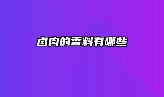种卤肉香料有:八角,小茴香,桂皮,花椒,胡椒,陈皮,孜然,丁香,香叶,姜,甘草,三奈、甘菘,豆蔻,葱,荆芥,紫苏,薄荷,白芷,白栀子,草果,姜黄,砂仁,罗汉果,香茅,肉桂,辛夷,甘松等。