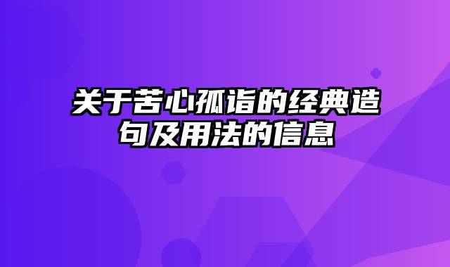 本篇文章给大家谈谈苦心孤诣的经典造句及用法,以及对应的知识点,希望对各位有所帮助,不要忘了收藏本站喔。