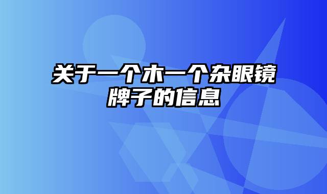 本篇文章给大家谈谈一个木一个杂眼镜牌子,以及对应的知识点,希望对各位有所帮助,不要忘了收藏本站喔。