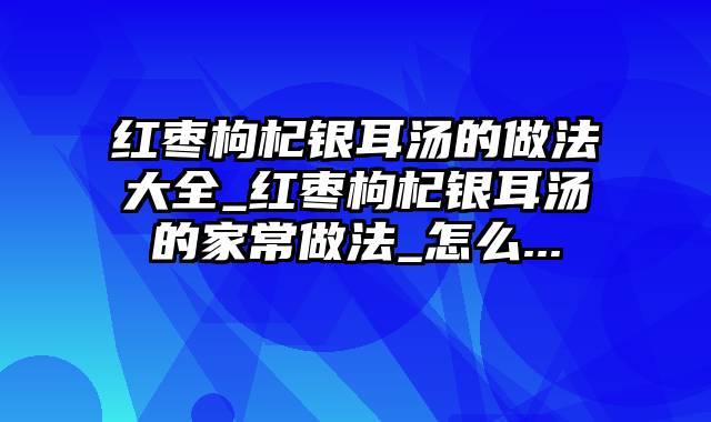 红枣枸杞银耳汤的做法大全_红枣枸杞银耳汤的家常做法_怎么...