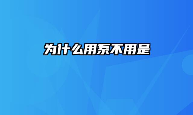 今天给各位分享为什么用系不用是的知识,其中也会对为什么都用系进行解释,如果能碰巧解决你现在面临的问题,别忘了关注本站,现在开始吧!