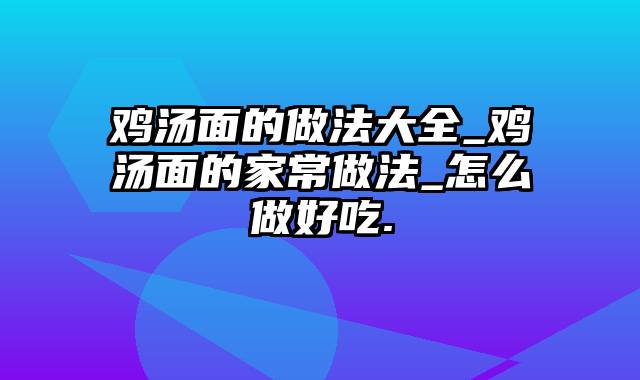 本篇文章给大家谈谈鸡汤面的做法大全_鸡汤面的家常做法_怎么做好吃.,以及好吃的鸡汤面怎么做好吃?对应的知识点,希望对各位有所帮助,不要忘了收藏本站喔。