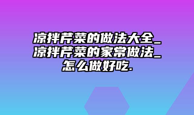 本篇文章给大家谈谈凉拌芹菜的做法大全_凉拌芹菜的家常做法_怎么做好吃.,以及凉拌芹菜做法视频对应的知识点,希望对各位有所帮助,不要忘了收藏本站喔。