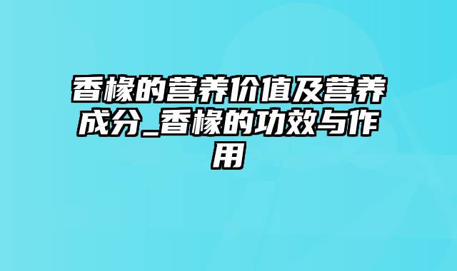香橼的营养价值