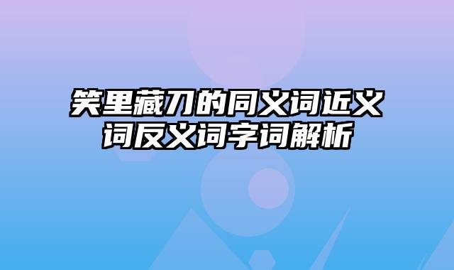 今天给各位分享笑里藏刀的同义词近义词反义词字词解析的知识,其中也会对笑里藏刀的同意词进行解释,如果能碰巧解决你现在面临的问题,别忘了关注本站,现在开始吧!