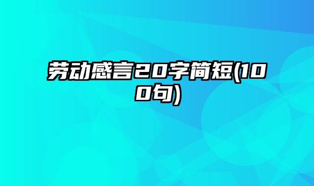 今天给各位分享劳动感言20字简短(100句)的知识,其中也会对劳动感言一句话20字进行解释,如果能碰巧解决你现在面临的问题,别忘了关注本站,现在开始吧!