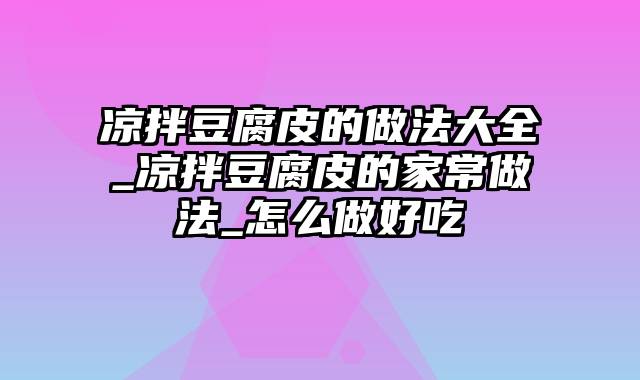 本篇文章给大家谈谈凉拌豆腐皮的做法大全_凉拌豆腐皮的家常做法_怎么做好吃,以及凉拌豆腐皮的做法?对应的知识点,希望对各位有所帮助,不要忘了收藏本站喔。