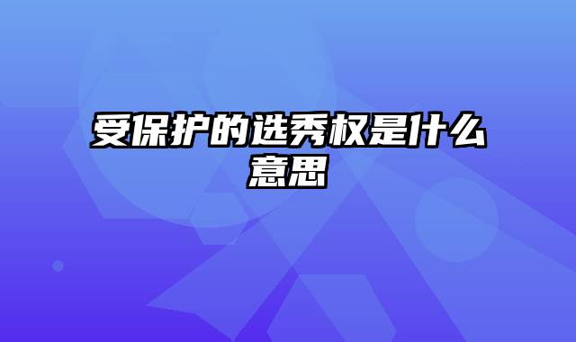 受保护的选秀权是指NBA球队未来两年首轮选秀权中的一个。联盟的规则也禁止任何一支球队把他们未来连续两年的首轮选秀权都拿去交易,所以说其中一个选秀权是“受保护的”。