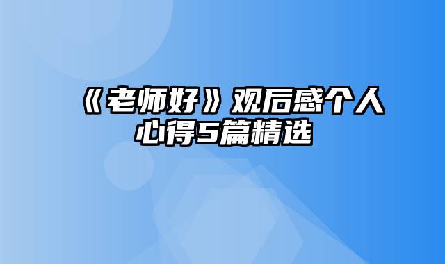 今天给各位分享《老师好》观后感个人心得5篇精选的知识,其中也会对老师好观后感10篇进行解释,如果能碰巧解决你现在面临的问题,别忘了关注本站,现在开始吧!