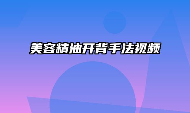 今天给各位分享美容精油开背手法视频的知识,其中也会对精油开背手法视频 视频教程进行解释,如果能碰巧解决你现在面临的问题,别忘了关注本站,现在开始吧!