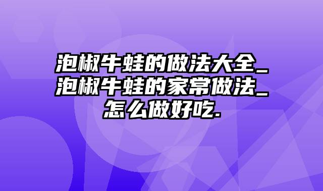 本篇文章给大家谈谈泡椒牛蛙的做法大全_泡椒牛蛙的家常做法_怎么做好吃.,以及泡椒牛蛙的做法与步骤对应的知识点,希望对各位有所帮助,不要忘了收藏本站喔。