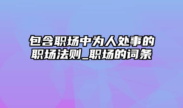 包含职场中为人处事的职场法则_职场的词条