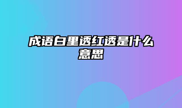本篇文章给大家谈谈成语白里透红透是什么意思,以及白里透红这个成语怎么解释对应的知识点,希望对各位有所帮助,不要忘了收藏本站喔。