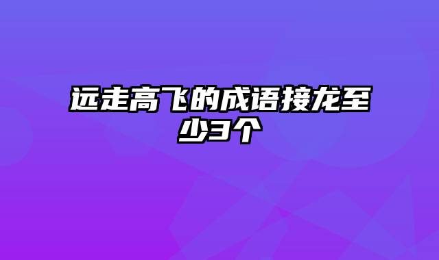 本篇文章给大家谈谈远走高飞的成语接龙至少3个,以及对应的知识点,希望对各位有所帮助,不要忘了收藏本站喔。