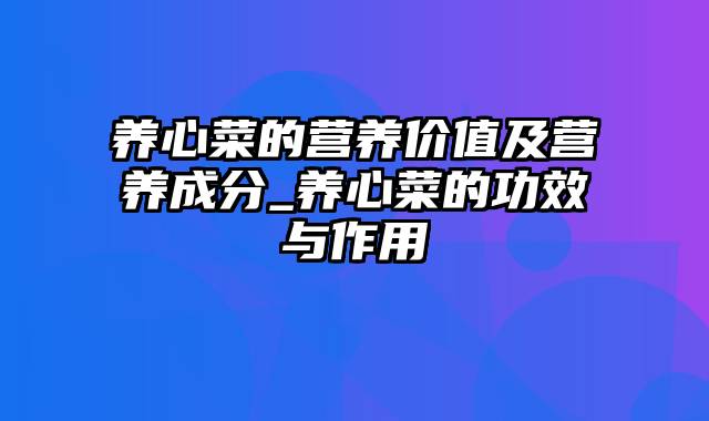 本篇文章给大家谈谈养心菜的营养价值及营养成分_养心菜的功效与作用,以及养心菜的功效与作用及食用方法菜对应的知识点,希望对各位有所帮助,不要忘了收藏本站喔。