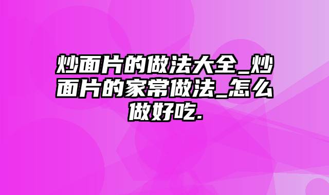 炒面片的做法大全_炒面片的家常做法_怎么做好吃.