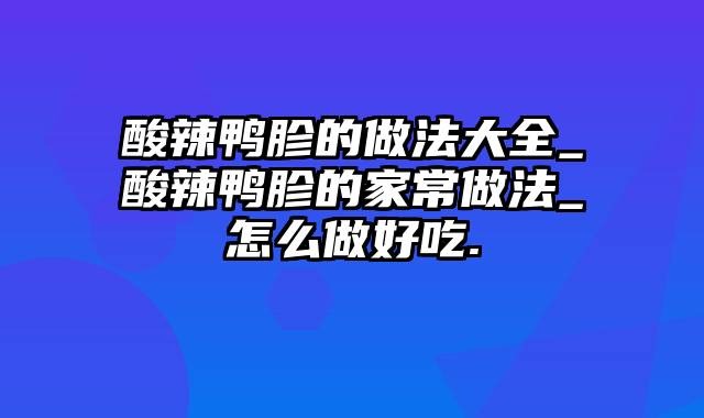 本篇文章给大家谈谈酸辣鸭胗的做法大全_酸辣鸭胗的家常做法_怎么做好吃.,以及酸辣鸭珍怎么做对应的知识点,希望对各位有所帮助,不要忘了收藏本站喔。