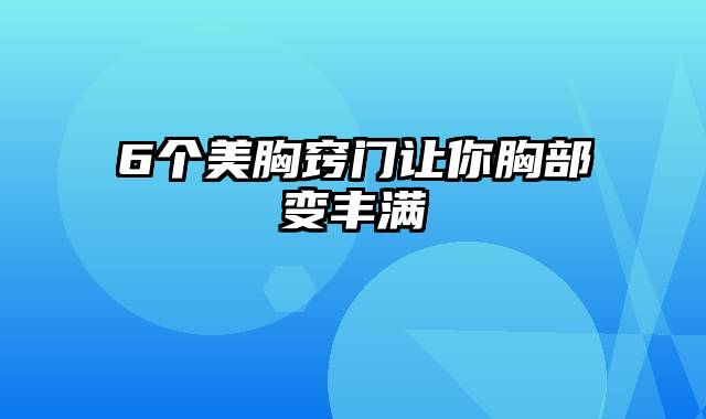 今天给各位分享6个美胸窍门让你胸部变丰满的知识,其中也会对6个美胸窍门让你胸部变丰满进行解释,如果能碰巧解决你现在面临的问题,别忘了关注本站,现在开始吧!