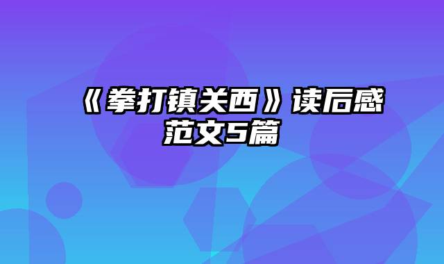 今天给各位分享《拳打镇关西》读后感范文5篇的知识,其中也会对关于拳打镇关西的读后感进行解释,如果能碰巧解决你现在面临的问题,别忘了关注本站,现在开始吧!