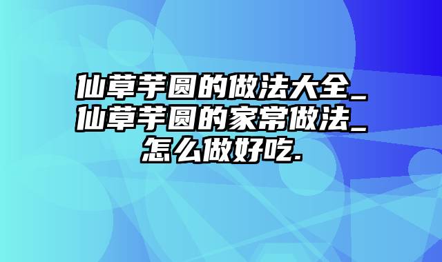 本篇文章给大家谈谈仙草芋圆的做法大全_仙草芋圆的家常做法_怎么做好吃.,以及仙草和芋圆有什么区别对应的知识点,希望对各位有所帮助,不要忘了收藏本站喔。