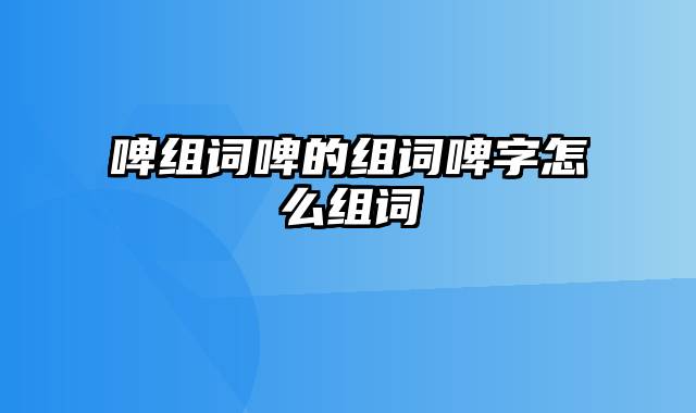 啤字怎么组词问题三:啤字怎么组词 ○卑加偏旁 郫:郫县 脾:脾气 裨:裨益 髀:髀肉 碑:碑文 稗:稗官 捭:捭阖 俾:俾斯麦 婢:婢女 睥:睥睨 蜱:蜱螨 啤:啤酒 问题四:啤可以组什么成语 凄入肝脾 形容非常悲伤。
