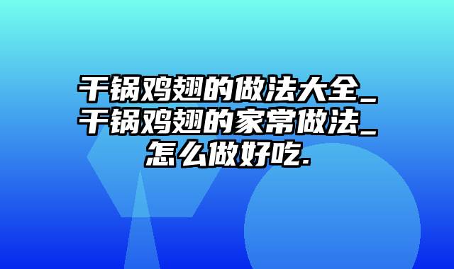干锅鸡翅的做法大全_干锅鸡翅的家常做法_怎么做好吃.