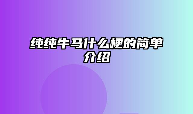 纯纯的牛马是网络直播主播说的话,别的直播间的黑粉不给他刷礼物,所以他在公屏上说些没用的话,主播就生气的说你们是纯纯的牛马很瞧不起他们这帮人,纯纯的牛马就是这帮主播说出来的话。