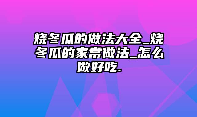 本篇文章给大家谈谈烧冬瓜的做法大全_烧冬瓜的家常做法_怎么做好吃.,以及还在烧冬瓜有什么好处对应的知识点,希望对各位有所帮助,不要忘了收藏本站喔。