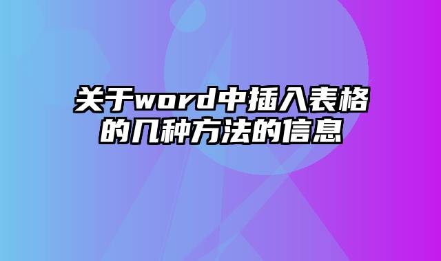 关于word中插入表格的几种方法的信息